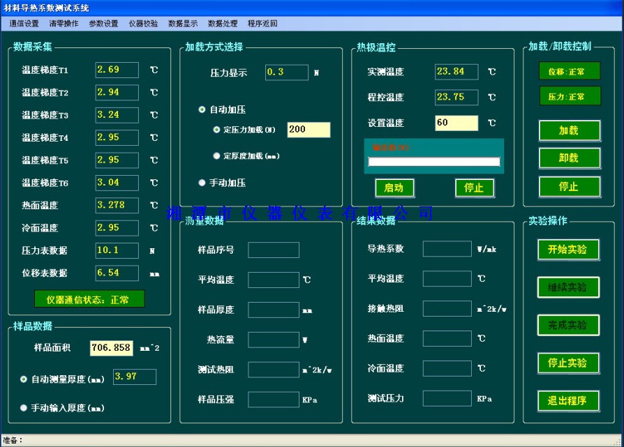 儀器特點:自動加壓,自動測厚,實驗全自動控制。6點溫度梯度檢測,提高測試精度。可檢測不同壓力下熱阻曲線,采用優(yōu)化的數(shù)學(xué)模型,測量材料導(dǎo)熱系數(shù)和熱阻以及界面處接觸熱阻等。